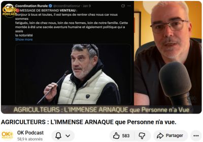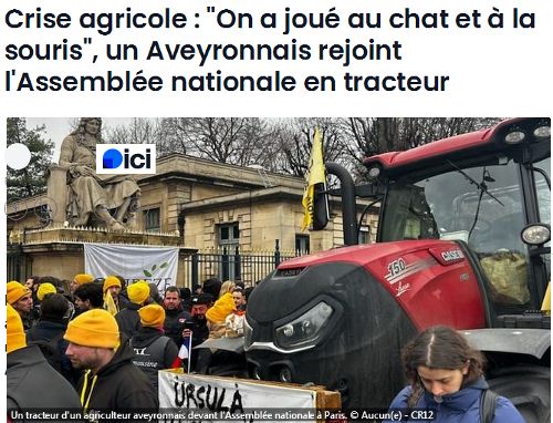 MISE A JOUR DU 09.01.2026 : La poulette Yaël, descendue de son perchoir, s'est retrouvée dans la basse cour de l'Assemblée Nationale entourée de coqs Gaulois un peu remontés. Je le rappelle, ce fier gallinacé est le seul volatile à chanter les pieds dans la merde. Bravo à notre rusé Aveyronnais qui est le seul à être parvenu à s'infiltrer jusque devant l'Assemblée Nationale en utilisant toutes les ficelles pour échapper à la tagada tactique des gendarmes, bien connue des paysans, le braconnage est formateur. N'empêche que les "agriculteurs" ont réussi là où les gilets jaunes et les émeutiers de février 34 ont échoué, avec en plus une occupation symbolique de la Tour Eiffel et de l'Arc de Triomphe. Avertissement sans frais aux minets narcissiques et immatures : la Gueuse vient de sentir le vent du boulet parfumé à la bouse de vache. Retenons aussi le plantage magistral de mon grand copain Nunuche, avec en prime une émeute Marocaine. Cette affaire prouve en tous cas que les lieux de pouvoir sont de facto très vulnérables : trois VBCI et le problème est réglé. Voir aussi : https://ripostelaique.com/le-combat-de-nos-paysans-et-le-djihad-des-supporters-algeriens-et-marocains.html https://ripostelaique.com/exceptionnelle-action-de-nos-agriculteurs-a-paris-vaincre-ou-mourir.html https://ripostelaique.com/braun-pivet-huee-aurait-demande-aux-paysans-daller-nourrir-ses-poules.html