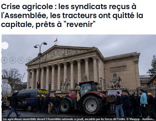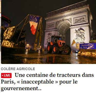 MISE A JOUR DU 13.01.2026 : Une nouvelle fois, à la barbe des sicaires du régime, les tracteurs sont de nouveau rentrés dans Paris, à l'heure des loups, soit par Issy soit par Ivry. Mon Nunuche passe encore pour une bille. Cette fois c'est la FNSEA qui s'y colle.