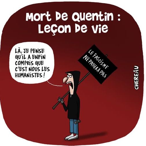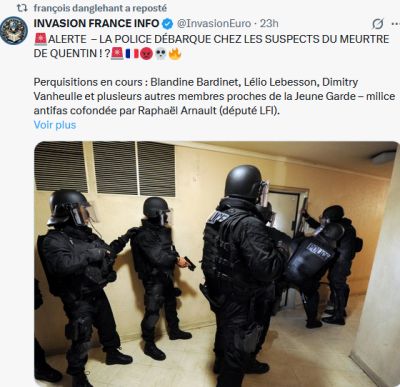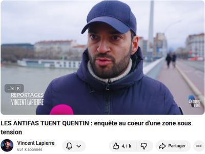 MISE A JOUR DU 16.02.2026 : Nombreux articles chez nos sites habituels. Les vidéos vont permettre d'identifier des auteurs. Mon grand copain Nunuche se prend dans la tronche des affaires en rafales, conséquences du privilège rouge d'impunité, merci Moussa et le Yéti. Pas encore une seule interpellation. Le contraste entre les lourdes condamnations des militants identitaires et de la résistance (AFO, Génération Identitaire, ASLA...), qui manifestent avec des banderoles ou n'ont... rien fait, et l'exécution en règle de Quentin est spectaculaire et indécente.
